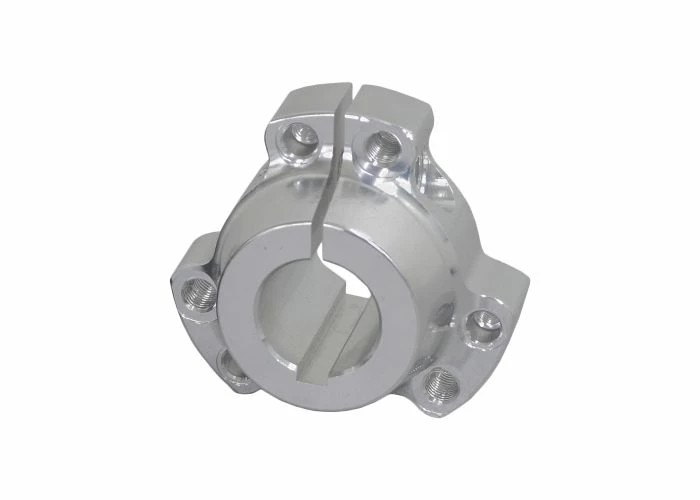 The hub pieces have been pre-drilled to accept standard 1/4″ or 5/16″ bolts; the bolt holes having a 2-1/2″ circle. In addition, the bore has been milled for 1/4″ axle key