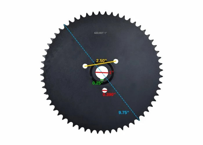 This large chain sprocket is compatible with several brands of Chinese produced go-karts and dune buggies, including models from Yerf-dog and others. This chain sprocket has 60 teeth and sized for 40/41/420 chain. In addition, it sports a 1″ bore (central hole) and a 1/4″ milled keyway.